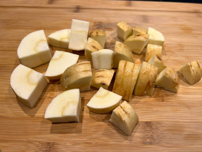 fiecare poate să le taie cum dorește. De menționat aici, coaja rămâne pe legume pentru că