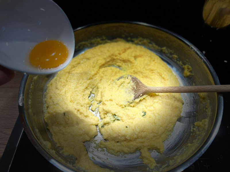 După 6-8 minute, adăugăm parmezanul și amestecam totul bine, după care adăugăm gălbenușul de ou, amestecând din nou. Aici, am de precizat că timpul diferă în funcție de