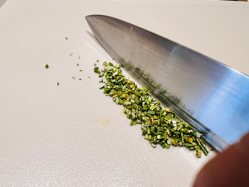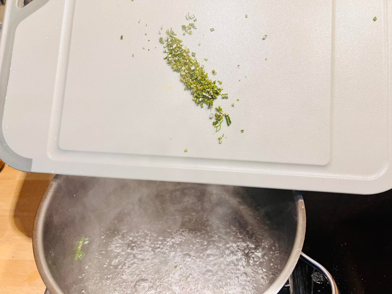 Între timp, tocăm mărunt rozmarinul și dăm parmezanul pe răzătoarea fină.