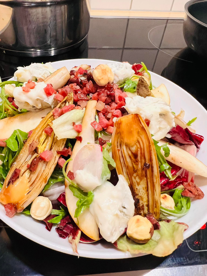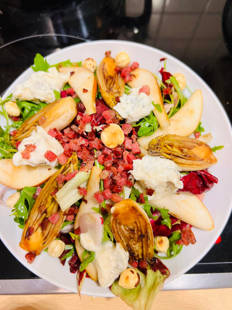 Vă invit să vă bucurați de o salată de toamnă pe care merită s-o pregătiți, este o combinație de gusturi și arome.
