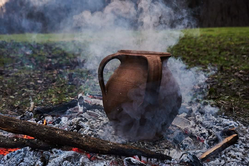 invitații, încearcă varianta de sarmale gătite lângă foc în oală de lut.