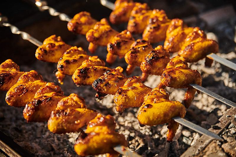 Vestitele aripioare de pui care se prăjesc la o distanță de 25-30 cm deasupra jarului