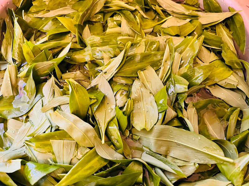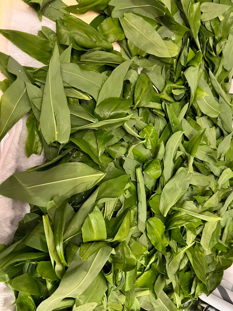 După ce am adunat leurda, am pus-o într-o chiuvetă și am spălat-o în mai multe ape, apoi am lăsat-o la zvântat pe câteva prosoape de hârtie de bucătărie.