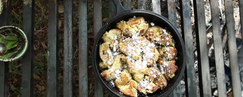 Se presară stafide şi se prăjeşte, apoi se taie cu două linguri în bucăţi şi se întorc pe partea cealaltă.
