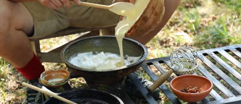 În acest fel se formează un amestec omogen, dar atenţie, nu amestecaţi foarte mult. Încălziţi untul într-o tigaie mare, adăugaţi încet aluatul.