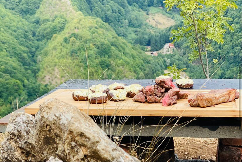 Apoi lăsaţi Steak-ul să se odihnească. Se presară sare şi piper şi se serveşte cu ciuperci umplute.