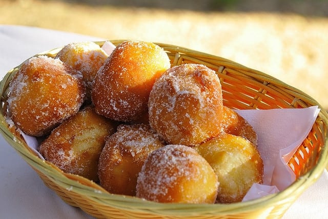 Se amestecă bine într-un castron ouăle cu iaurt, esenţa de rom, zeama de la o lămâie, zahărul şi sarea. Se amestecă separat praful de copt cu făina. Se înglobează făina în aluatul umed şi se amestecă bine, până la omogenizare. Într-o cratiţă sau tigaie mai înaltă încingeţi uleiul cât pentru o friteuză. Se ia câte o lingură din amestecul pentru gogoşi şi se toarnă încet, dintr-o singură mişcare în uleiul încins. Dacă nu se întorc singure, se întorc gogoşile pe cealaltă parte când devin aurii. Se scot gogoşile pe un şervet de hârtie, sau un grătar, să se scurgă uleiul în exces. Se pudrează cu zahăr şi eventual scorţişoară şi se servesc calde sau se lasă să se răcească.