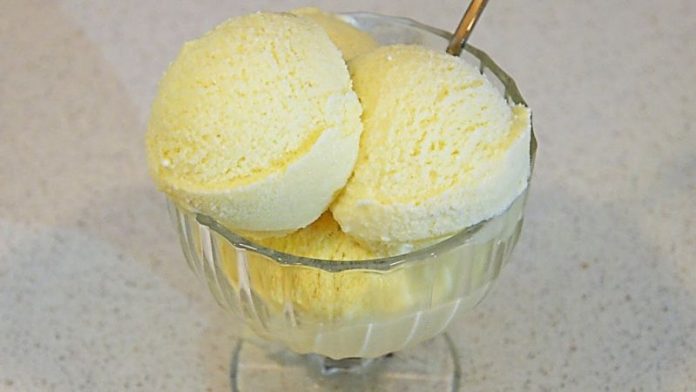 Se amestecă într-un vas laptele şi smântâna dulce, apoi se adaugă păstăile de vanilie sau esenţa. Vasul se pune pe foc până când lichidul obţinut începe să fiarbă. Focul se stinge, iar vasul se dă la o parte pentru a se răcori amestecul de lapte şi smântână. Între timp, se mixează gălbenuşurile amestecate cu zahărul şi praful de sare. Este foarte important să se mixeze foarte bine, până când devin o cremă groasă. Apoi se adaugă laptele puţin câte puţin şi se continuă să se mixeze la o viteză mică. Compoziţia astfel obţinută se aşează din nou pe foc până când începe să se îngroaşe. Se verifică foarte simplu dacă este gata. Se ia o lingură curată, se introduce în cremă şi se trage o linie cu degetul. Dacă pe lingură părţile de cremă rămân de-o parte şi de alta a liniei trasate, atunci compoziţia a fiert îndeajuns. Se pune într-un vas, se acoperă cu o folie şi se lasă să ajungă la temperatura camerei. Se introduce vasul în congelator şi se lasă până a doua zi. În primele ore, este indicat să se scoată vasul de câteva ori afară, să se amestece foarte bine, după care se reintroduce la congelator. Astfel, se obţine o îngheţată mult mai cremoasă.