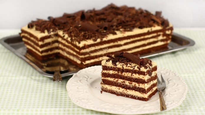 Ingrediente: 8 ouă, 250 grame zahăr, 120 grame făină, 1 plic de praf de copt, 70 de grame de griș, 55 de grame de cacao, 150 ml. lapte, 100 ml. ulei vegetal, 100 grame unt cu 80% grăsime, 2 plicuri de zahăr vanilinat, 1 praf de sare.