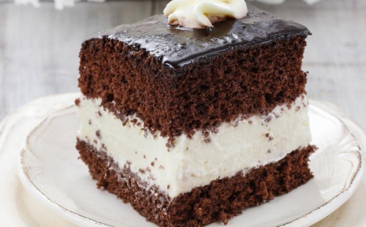 Se distribuie crema cu lapte peste blatul cu cacao copt și răcit.