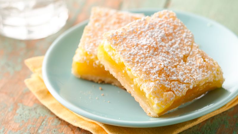 Prepararea cremei. Praful de budincă se amestecă cu laptele şi se pun la fiert amestecând continuu până se îngroaşă crema. Se lasă crema la răcit, se adaugă untul tăiat cubuleţe, zeama şi coaja de lămâie şi se mixează 2-3 minute până se obține o cremă fină. Se întinde în strat gros crema de lămâie peste blat şi se pudrează cu zahăr. Se pune prăjitura la rece, apoi se poate porţiona.