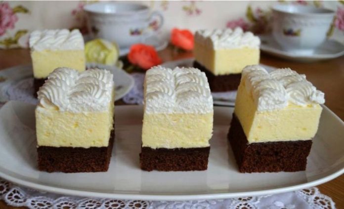 Ingrediente: 7 gălbenușuri, 150 g zahăr, 120 ml apă, 2 linguri unt topit, 200 g făină,1 plic praf de copt, 2 linguri cacao.