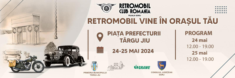 Pasionații autoturismelor de epocă vor putea admira, timp de două zile, în centrul municipiului Târgu Jiu, adevărate „bijuterii” pe patru roți. „Vineri, 24 mai, începând cu ora 12.00, vă așteptăm în Piață Prefecturii din Târgu Jiu la o expoziție sub denumirea «Retromobil vine în orașul tău». Vor fi expuse autovehicule istorice atestate din perioada antebelică, cel mai vechi fiind din anul 1928, autovehicule care vor putea fi admirate pentru prima dată la Târgu Jiu”, anunță organizatorii.