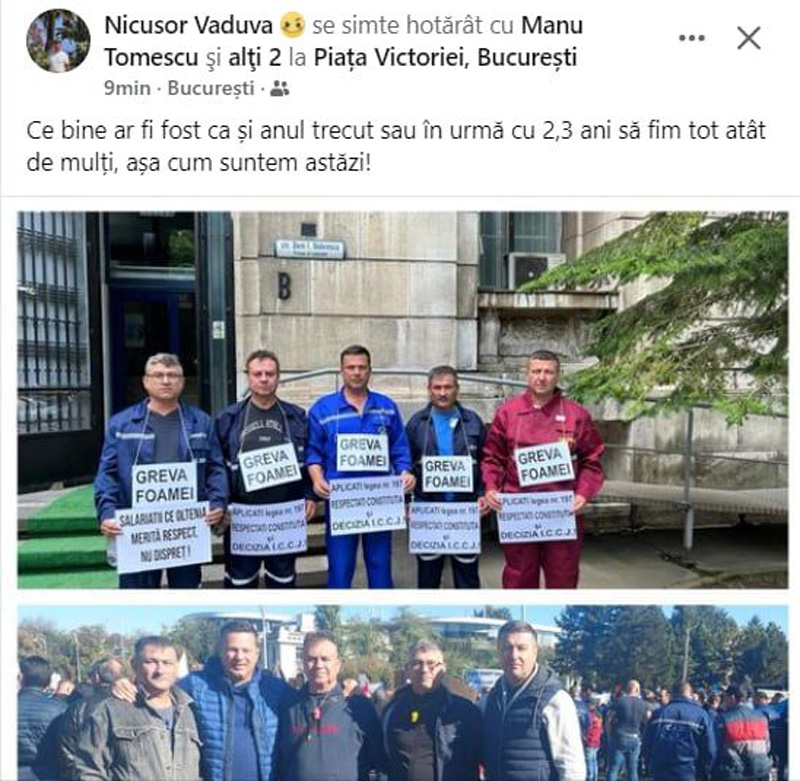 Foștii angajați spun că pensiile lor ar urma să fie mult mai mici, odată cu modificările aduse la legea pensiilor. Printre aceștia se numără și cei care încă lucrează și susțin că vor ieși la pensie cu un cuantum mai mic sau sunt nevoiți să lucreze mai mult pentru a ajunge la aceleași venituri pe care le-au primit și foștii lor colegi care au ieșit până acum la pensie. Ei cer eliminarea articolelor din lege care creează discriminare şi revenirea la cele din fosta lege. Oamenii sunt veniți din întreaga țară, în special din zona Moldova și Olteniei, dar și din Maramureș, de la fosta mină de uraniu.