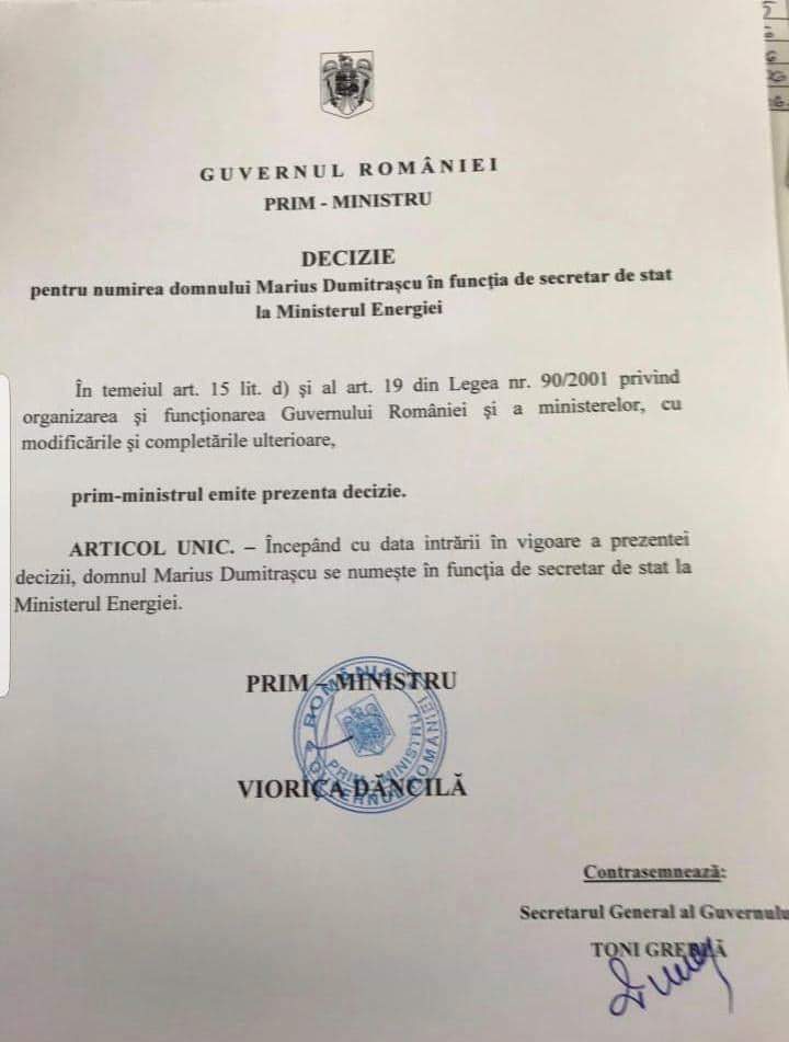 ,,Ca urmare a rezultatelor obținute de ALDE Gorj la alegerile europarlamentare din 26 mai, conducerea organizaţiei a făcut mai multe propuneri pentru funcţii guvernamentale, la diferite niveluri.Astăzi, propunerea noastră pentru o funcţie de secretar de stat în Ministerul Energiei, Marius Dumitraşcu, a fost concretizată, numirea fiind publicată în Monitorul Oficial.Conducerea ALDE Gorj îşi reafirmă obiectivul de a promova în funcţii profesionişti care să reprezinte cu demnitate Gorjul şi să poată face performanţă în favoarea gorjenilor”, a anunțat ALDE Gorj, ieri, promovarea noului secretar de stat, afaceristul Marius Dumitrașcu.