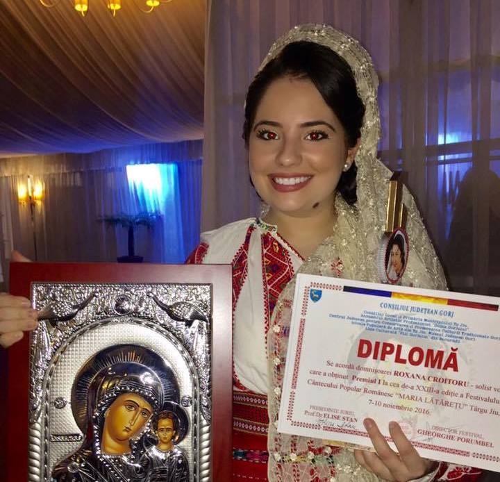 Roxana Croitoru primește titulatura ‘‘Gorjeanul Zilei” pentru cele două premii câștigate în cadrul Festivalului „Maria Lătăreţu”: premiul de excelență in memoriam „Maria Lătărețu” și premiul I la soliști vocali