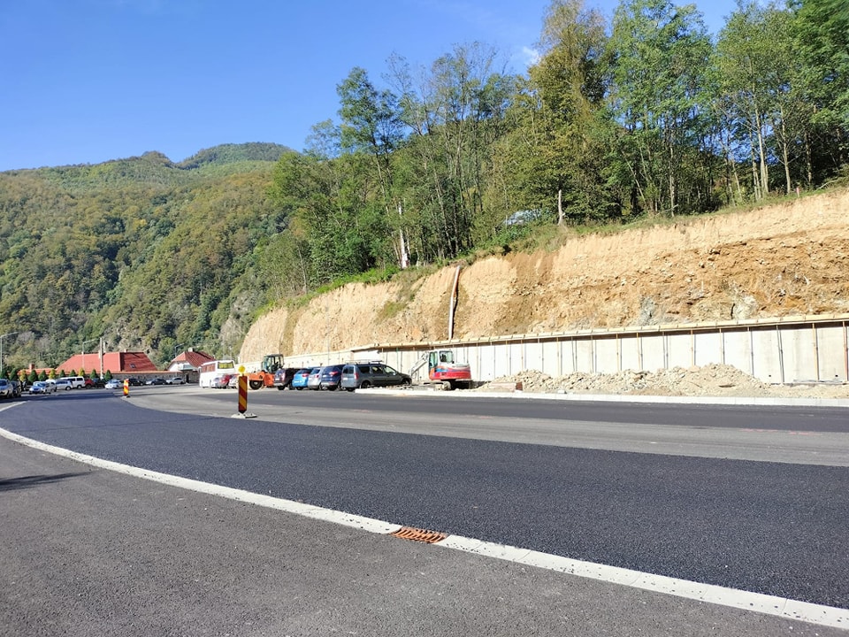Pe DN 66, Defileul Jiului, în zona mănăstirii Lainici, a fost finalizată așternerea stratului de uzură pe sensul de mers Târgu-Jiu-Petroșani.