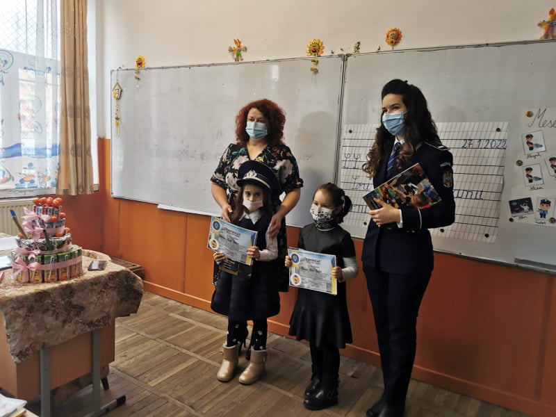 Sărbătoritele au primit în dar un „Certificat de polițiști junior”, care să marcheze ziua lor de naștere, iar tuturor elevilor le-au fost distribuite reviste cuprinzând activitățile reprezentative ale Poliției Române.