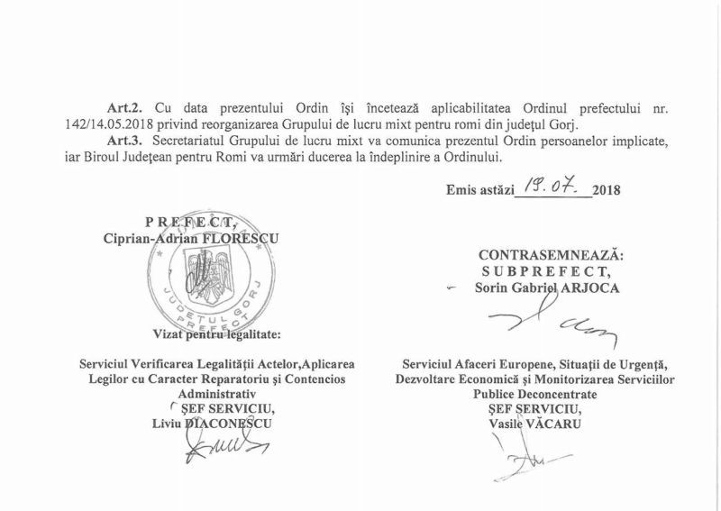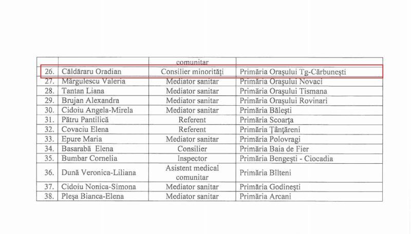 Mai exact, este vorba despre dublul inculpat Oradian Căldăraru care este consilier pe rromi în primărie, dar face parte și din Grupul de Lucru Mixt de la nivelul județului Gorj, numit prin ordin al prefectului, chiar dacă statutul său penal nu i-ar îngădui să discute despre problemele comunității, chiar dacă în general în această structură se discută despre comunitatea rromă de la nivel județului.