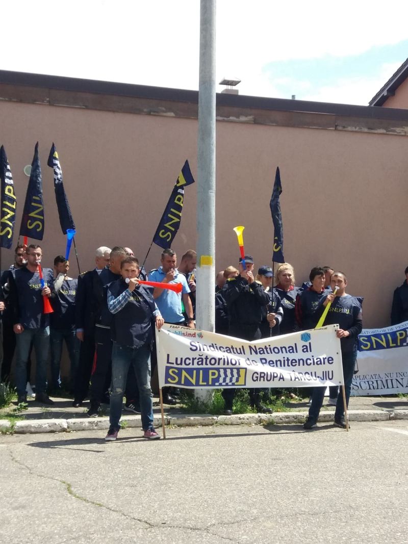Circa 15 lucrători ai Penitenciarului Târgu-Jiu, afiliați la Sindicatul Național al Lucrătorilor de Penitenciare (SNLP), condus la nivel de Târgu-Jiu de către liderul de sindicat Marius Măceșanu, s-au alăturat, vineri, protestelor organizate de colegii de la Penitenciarul Drobeta Turnu Severin.