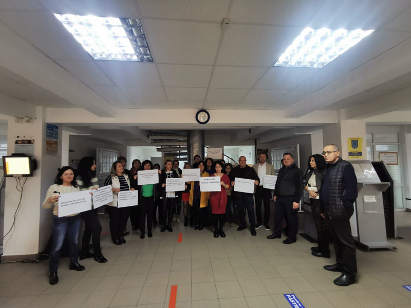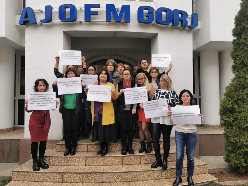 Salariații AJOFM Gorj au demarat protestele! Activitatea a fost întreruptă timp de o oră