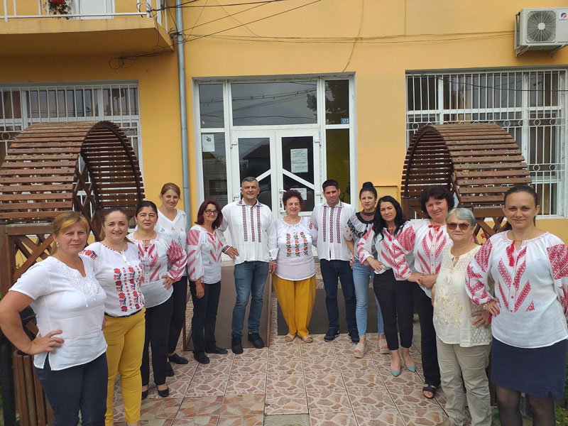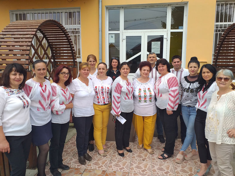 Salariații Primăriei comunei Țânțăreni, alături de primărița Maria Vasilescu, s-au prezentat, ieri, de Sânziene, la locul de muncă purtând ie, cămaşă tradiţională, costum sau orice alt strai popular.