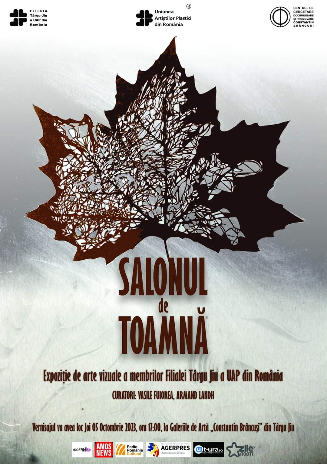 Filiala Târgu Jiu a UAP din România în parteneriat cu Centrul de Cercetare Documentare și Promovare „Constantin Brâncuși” din Târgu Jiu, organizează joi, 5 octombrie 2023, ora 17.00, la Galeriile de Artă „Constantin Brâncuși” din Târgu Jiu, vernisajul Expoziție de Arte Vizuale „SALONUL DE TOAMNĂ” al membrilor Filialei Târgu Jiu a UAP din România.
