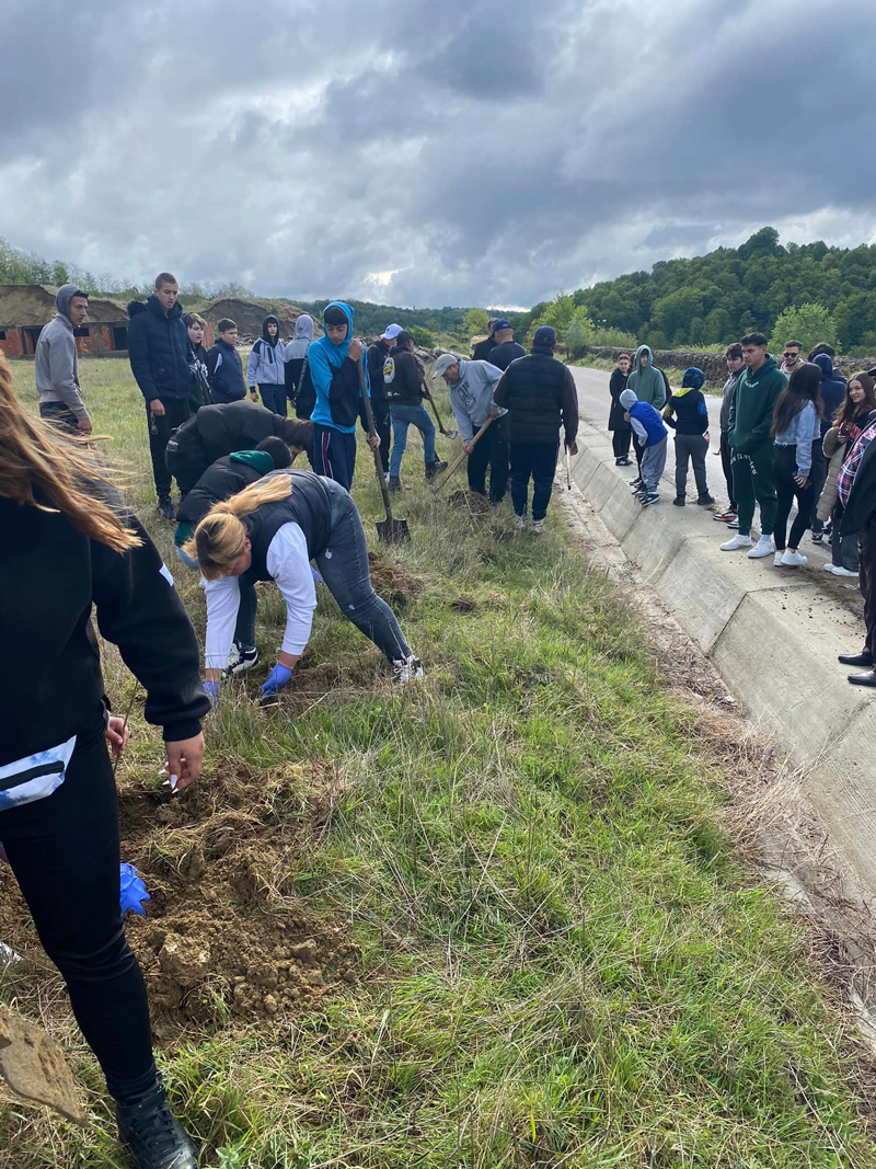 „Săptămâna verde! Educație în natură! Astăzi (n.red. luni) am avut o acțiune de amploare cu elevii din comuna Roșia de Amaradia, cadrele didactice și cu sprijinul domnului Drăgan Vintu, să plantăm puieți de arbori (frasin, paltin și gorun).