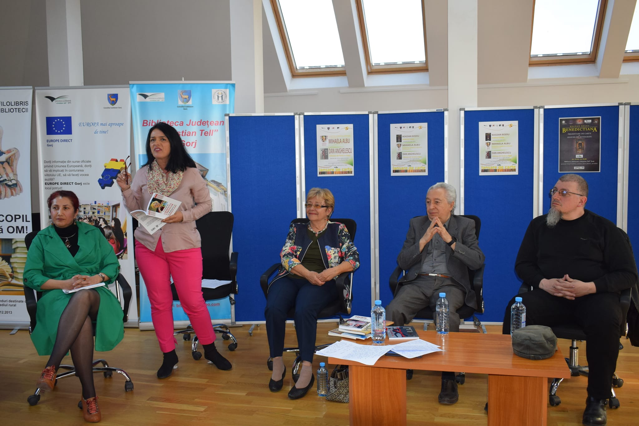 Bogdan BOERU aduce de această dată în fața publicului gorjean, romanul „Benedictiana”, o carte în care știe să armonizeze registrele, cel al romanului istoric bine documentat cu cel al romanului de aventuri, exotismul cu localul, dialogul ironic cu suspansul, pana cu sabia. „Benedictiana este o cetate imaginară, așezată pe actualul teritoriu al Siriei, la sfârșitul sec. XII, cu personaje puternice și emblematice, care trăiesc aventuri spectaculoase, fantastice, dar și drame ale propriilor măriri și prăbușiri. Scriitura lui Bogdan Boeru este una cinematică, cu cadre ample, dinamice și detalii revelatoare de taine ascunse, pe un ritm care te ține prins până la finalul dramatic. Acțiunea din „Benedictiana” își dorește a fi o lecție despre cum ar putea fi abordate frământările contemporaneității, plecându-se de la constatarea simplă că, înainte de a ne construi identitatea pe fundamente religioase, politice, etnice etc, suntem oameni. Prezentarea romanului a fost făcută de către domnul Viorel Surdoiu de la Biblioteca Județeană „Christian Tell”.