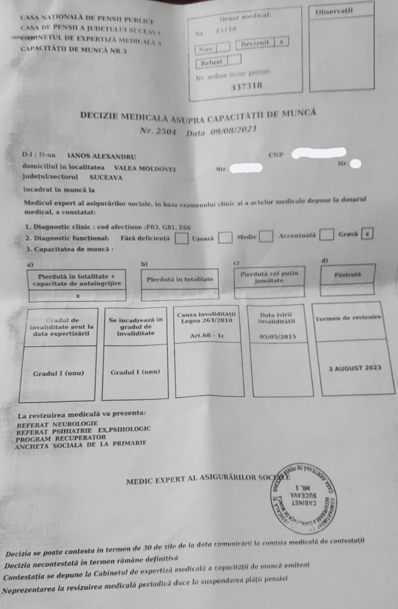 * Familia victimei cere dreptate! Ianoș Alexandru a devenit un asistat cu gradul I de handicap