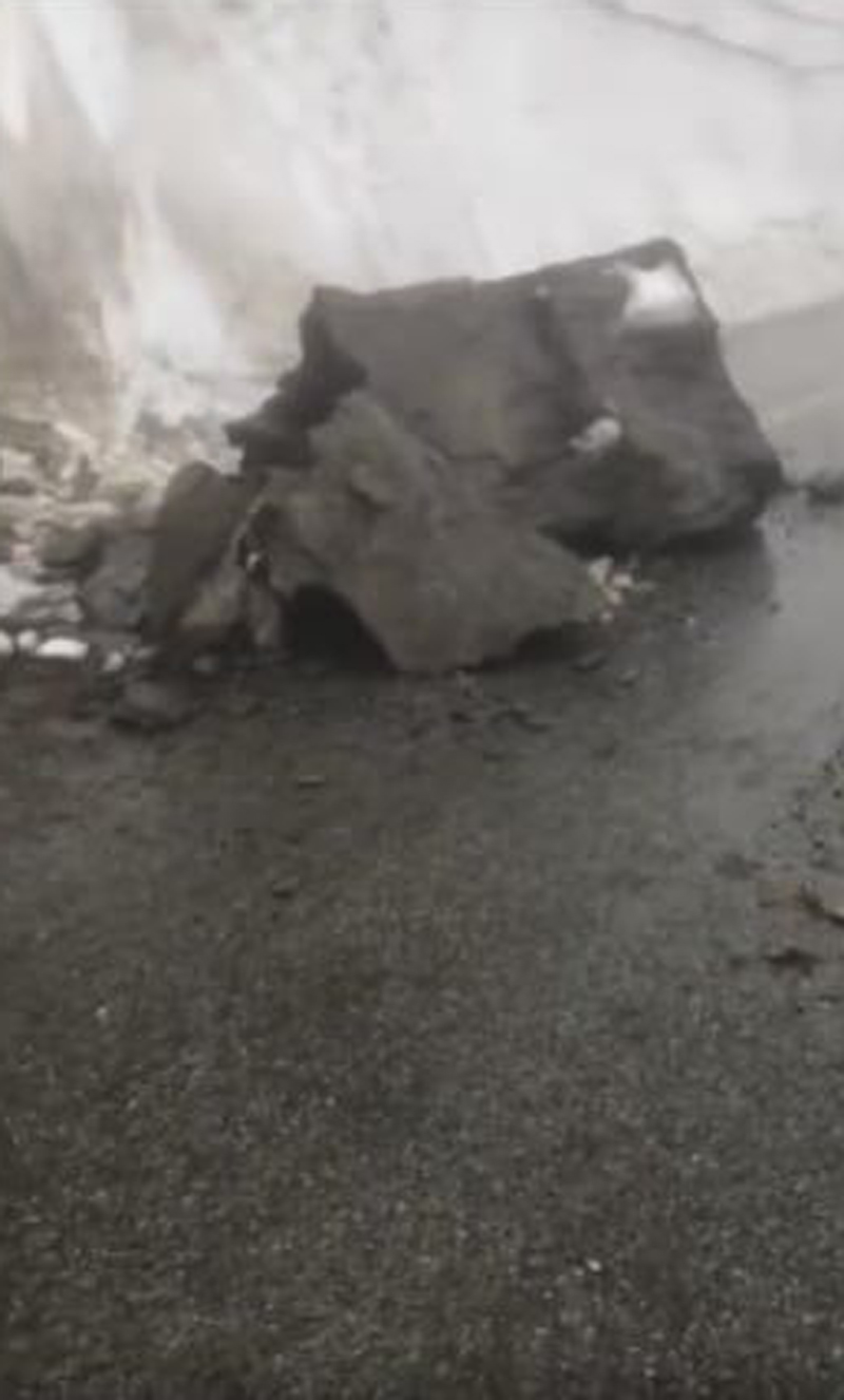 Din fotografiile prezentate de DRDP Craiova reiese că drumul reprezintă un pericol, bucăți de pământ, rocă și zăpadă desprinzându-se de pe versant și căzând pe carosabil.
