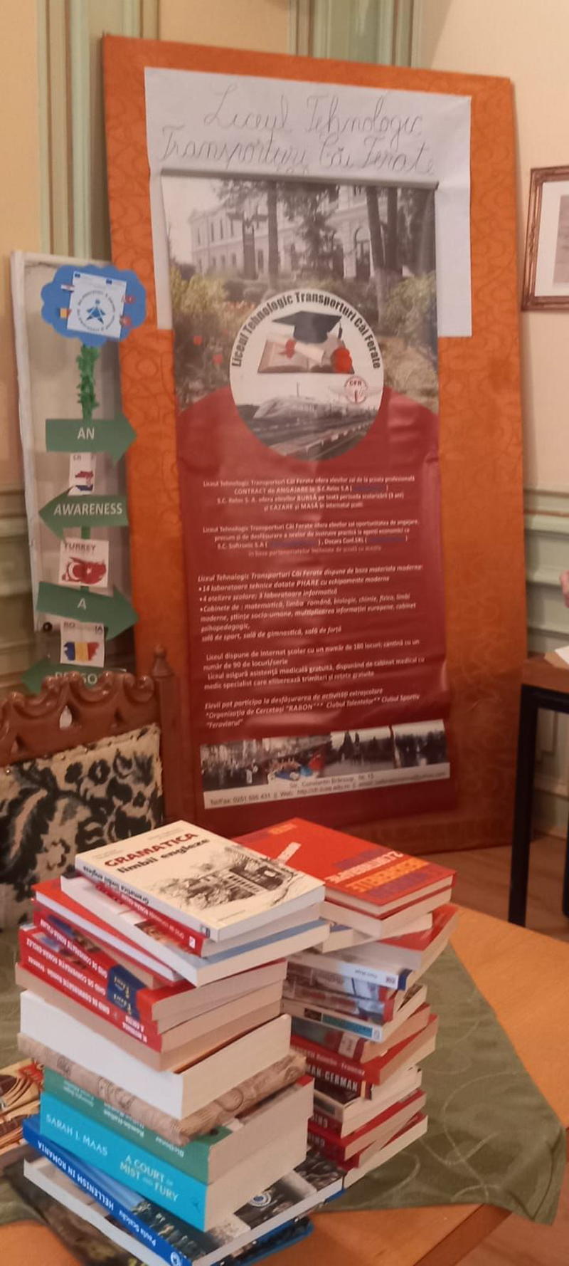 La final, vizita a inclus și o donație de carte străină, din partea oaspeților, iar în coletul de cărți am găsit câteva ghiduri de conversație în mai multe limbi străine, engleza în imagini sau cursuri practice în limbile engleză, germană, italiană, acestea fiind doar câteva titluri, ce își vor găsi curând locul pe raftul bibliotecii, dar și cititorul potrivit.