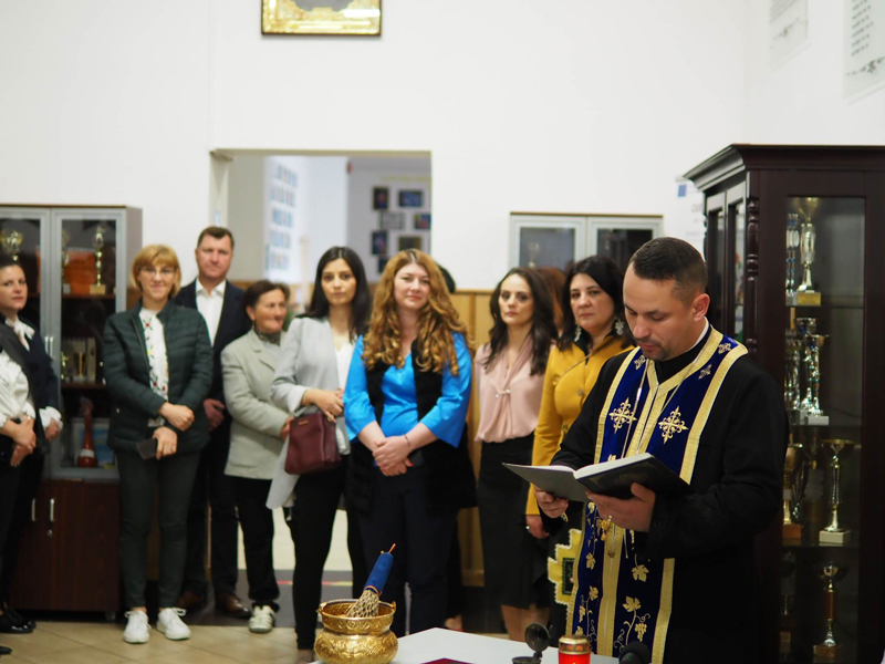După discursul conducerii școlii, în care s-a subliniat excelenta colaborare a colegilor din școală dar și partenerii din proiect, Primăria și Consiliul Local Târgu-Jiu și Inspectoratul Școlar Județean Gorj, s-a oficiat o slujbă religioasă.