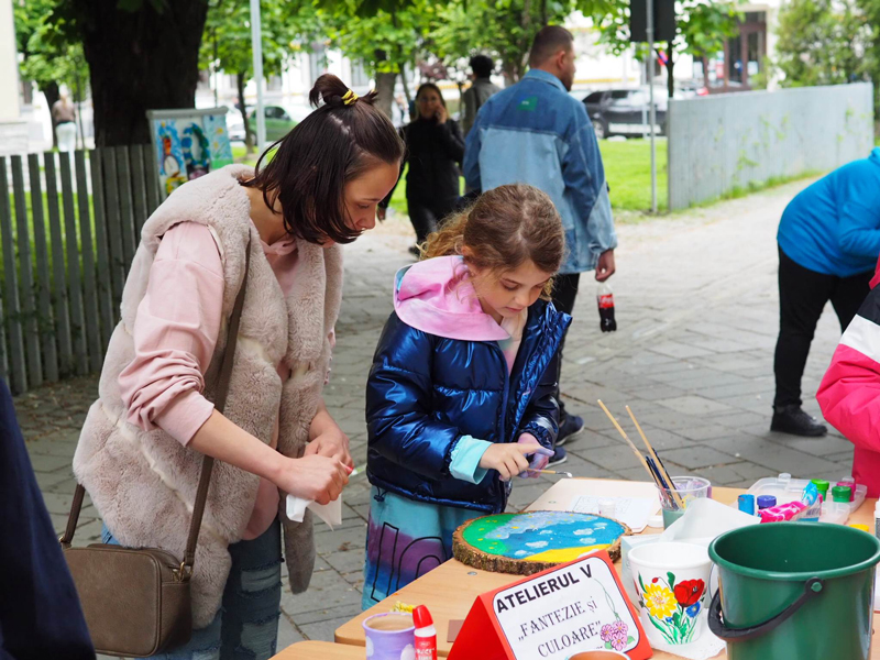 Momentul emoționat a fost urmat de o întâlnirea dintre generații în amfiteatrul scolii, asta în timp ce în afara școlii, pe Calea Eroilor erau pregătite ateliere de creație în aer liber.
