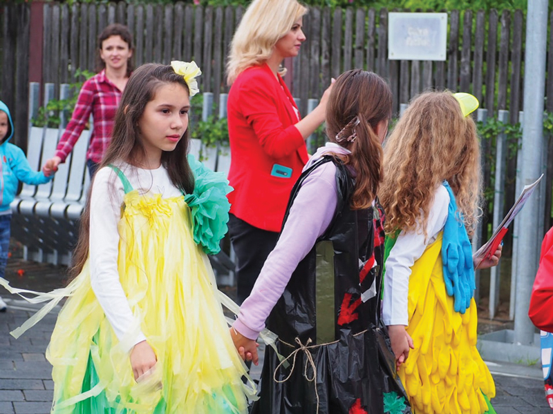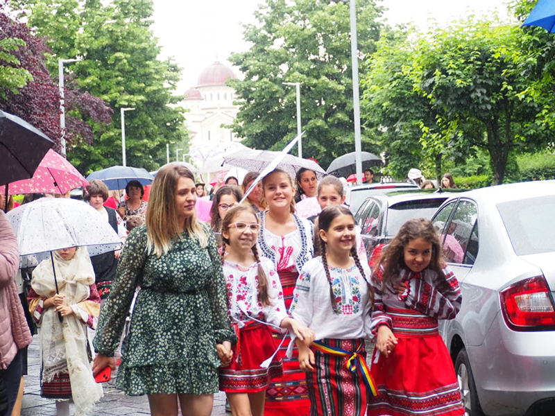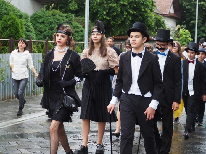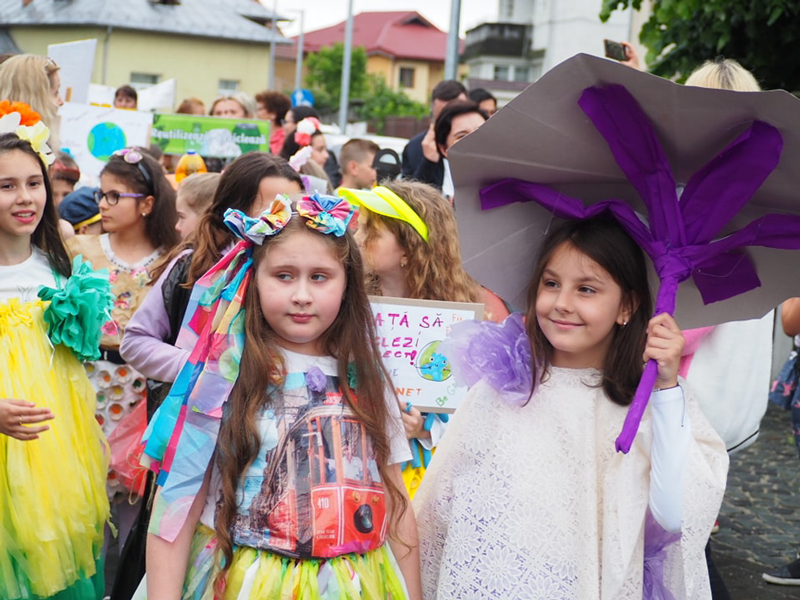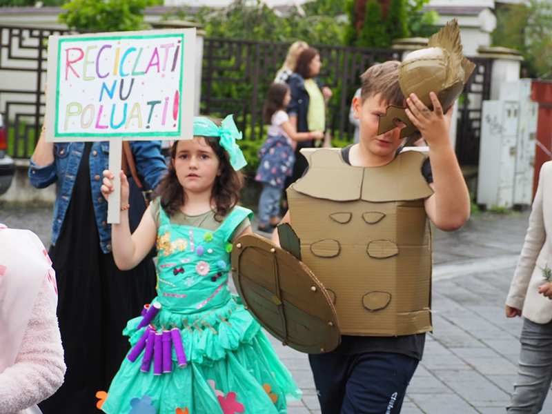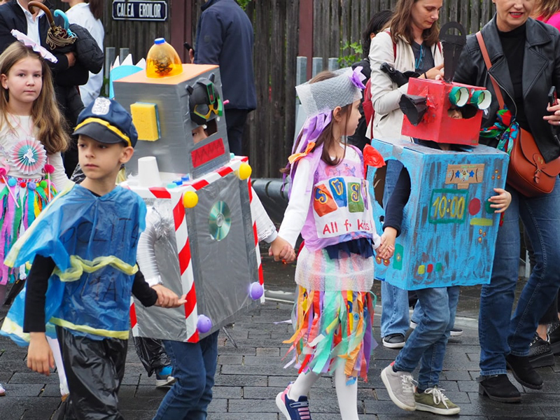 O parte, au ales să coboare în stradă, direct din cărțile cu povesti, iar strada din fața școlii s-a umplut de cavaleri în armuri și prințese, în timp ce alții au îmbrăcat haine create din materiale ecologice, colorând parada cu un manifest pentru protejarea mediului înconjurător. Din alai nu au lipsit dragonii, roboții de tinichea și a fost, în marea de copii, chiar și în un nor de ploaie ,,vinovat”, cu siguranță, de bruma de soare care a încălzit mulțimea pentru 20 de minute de paradă. Copiii veseli s-au adăpostit apoi, coordonați de directorul Vasile Udroiu, și de echipa sa de conducere, pe holurile școlii, apoi în amfiteatru, unde s-au împărțit, cu generozitate, în aplauze și ovații, dar și premiile pentru elevii merituoși ai școlii. Pe vreme s-a mizat și la flashmobul de final, ca apoi în școală să sune ultimul clopoțel. A venit vacanța mare ..!