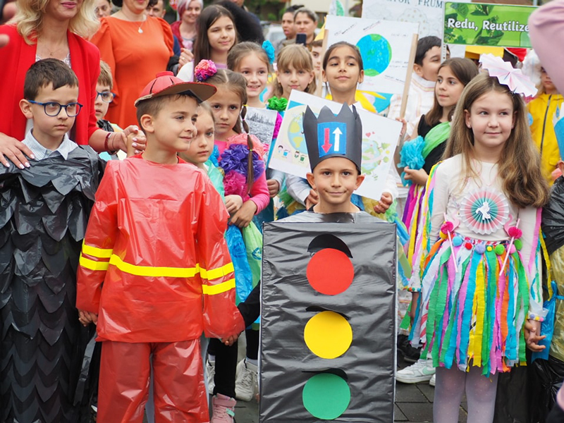 Școala Gimnazială ,,Alexandru Ștefulescu” și-a etalat valorile într-o paradă: Istorie, tradiție, creație, ecologism, viitor…