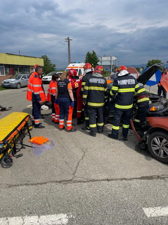 ‘Am fost solicitați să intervenim pentru gestionarea unei situații de urgenta generata de un accident rutier produs pe raza comunei Scoarța, satul Câmpu Mare, in care au fost implicare 2 autovehicule.