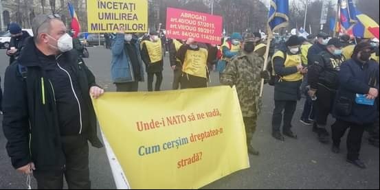 Către camarazii tăi care în loc să le povestească nepoților despre măreția NATO și despre lucrurile bune făcute de acesta trebuie să umble prin tribunale ca să-și capete o brumă de drepturi, legale de altfel, trebuie să iasă la mitinguri și pichetări ca să sensibilizeze decidenții în legătură cu incorectitudinea de care dau dovadă față de ei, trebuie să-și caute tot felul de slujbe pentru a rotunji veniturile familiilor…