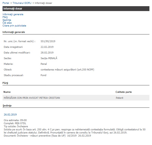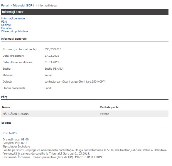 Trebuie menționat, de asemenea, că inculpata Simona Mărgăian a încercat pe 1 martie, pentru a patra oară, să scape de sechestrul pus pe averea sa de anchetatori, dar pentru a patra oară cererea sa de contestare a măsurilor asigurătorii a fost respinsă. În paralel și mama Simonei, Cornelia Tiriplică, dar și soțul acesteia, Ion Mărgăian, au încercat și ei același lucru, dar și lor li s-au respins cererile la Tribunalul Gorj.