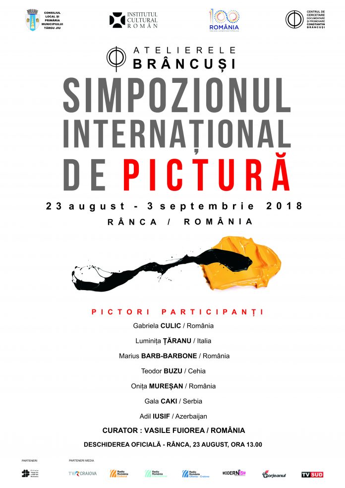 Centrul de Cercetare, Documentare şi Promovare „Constantin Brâncuşi” în parteneriat cu Institutul Cultural Român şi Filiala Târgu-Jiu a Uniunii  Artiştilor Plastici din România organizează, în perioada 23 august – 3 septembrie 2018, Simpozionul Internaţional de Pictură. Evenimentul, ce se va deschide joi, 23 august 2018, ora 13.00, la Complexul Panoramaic din Rânca, parte a Programului „Atelierele Brâncuşi”, ediţia a IV-a, va reuni în acest an pictori din România – Gabriela Culic, Oniţa Mureşan şi Marius Barb-Barbone, din Italia – Luminiţa Ţăranu, din Cehia – Teodor Buzu, din Serbia – Gala Caki şi din Azerbijan – Adil Iusif, curatorul simpozionului fiind pictorul Vasile Fuiorea.