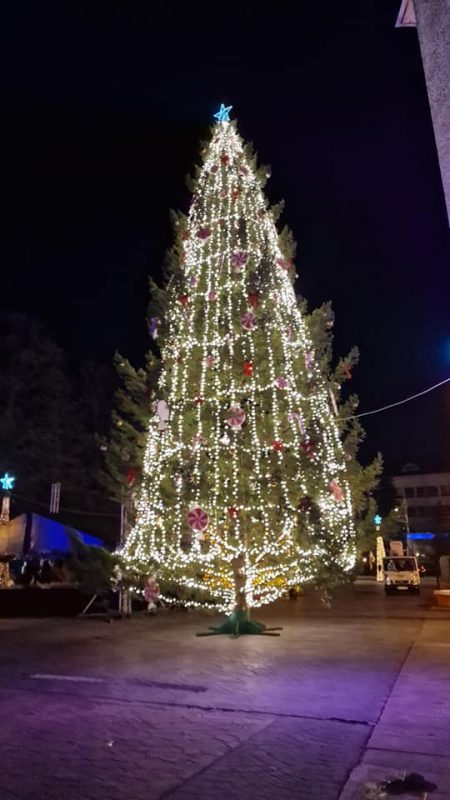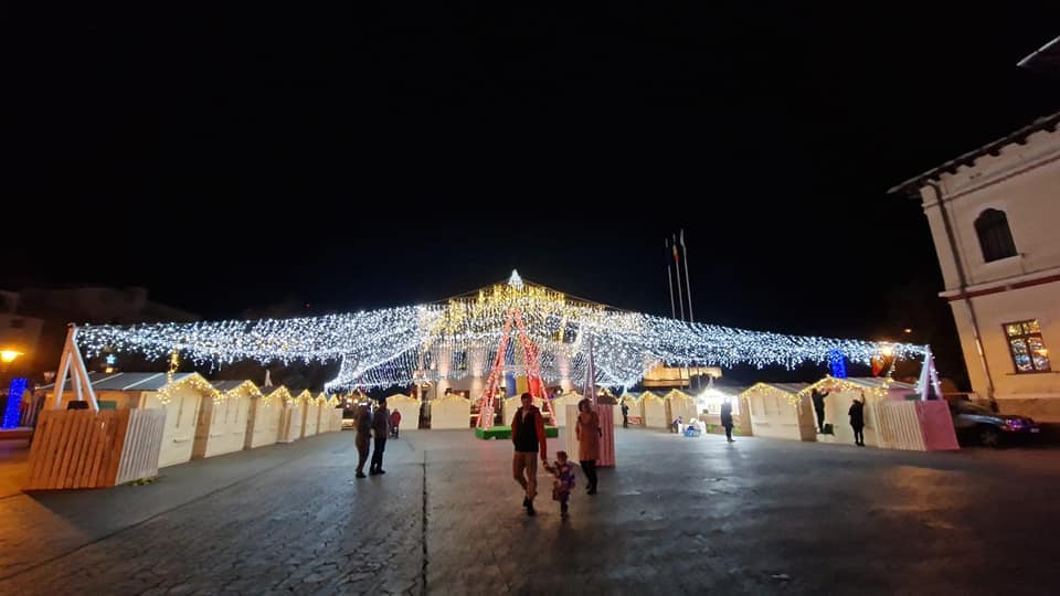 Bradul de Crăciun este natural, iar în centrul municipiului avem și un oaspete binecunoscut. Este vorba despre băcița Mărioara Babu care ne aduce bunătăți de la stână, produse care i-au adus titlul de Tezaur Uman Viu.