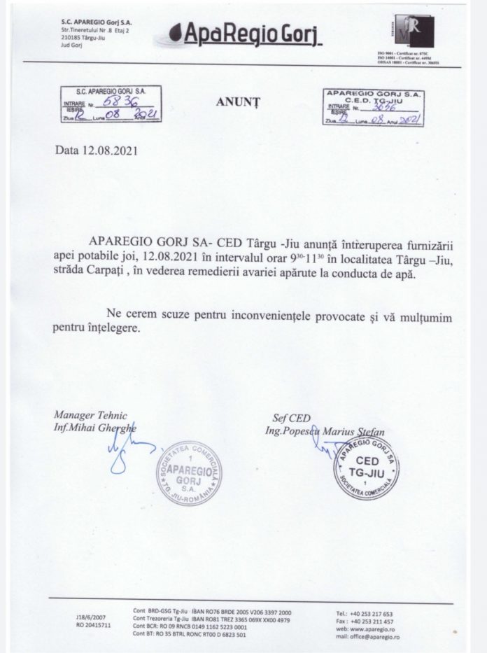 Se ia apa pe strada Carpați din Târgu Jiu!