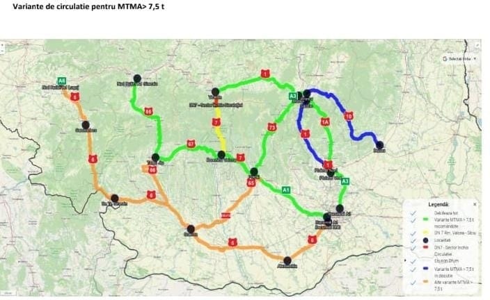 Pentru autovehiculele cu masa mai mică de 7,5 tone pot fi utilizate ca variante de ocolire drumurile naționale și județene din proximitatea sectorului închis circulației pe DN7.