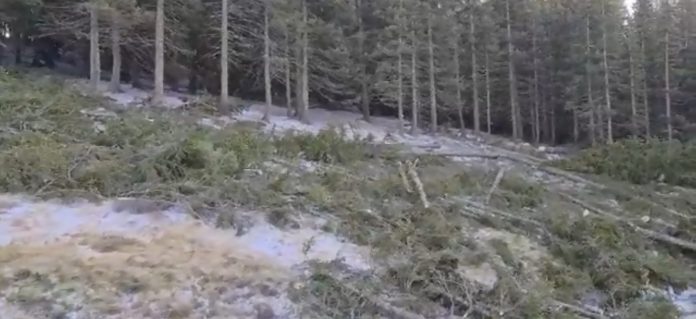 PER Gorj le-a arătat autorităților județene cum se taie pădurea, în stare de urgență, între cabana ACH si Motelul Tara, din stațiunea montană Rânca.