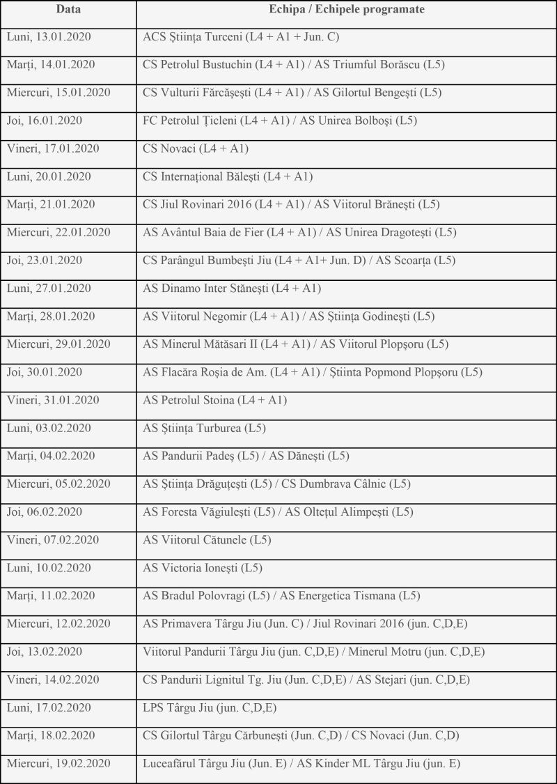 Asociaţia Judeţeană de Fotbal Gorj a făcut public, luni, programul vizării anuale a legitimațiilor jucătorilor pentru anul 2020. Reprezentanții cluburilor/asociațiilor sportive afiliate sunt invitate să se prezinte la sediul AJF Gorj în intervalul 10.00-12.00. Pentru efectuarea operațiunilor de vizare, cluburile sau asociațiile sportive trebuie să facă dovada faptului că nu au restanțe la AJF Gorj la data de 13 ianuarie 2020. Perioada 20-28 februarie a fost stabilită ca perioadă de definitivare a ultimelor vize și transferuri pentru echipele afiliate.