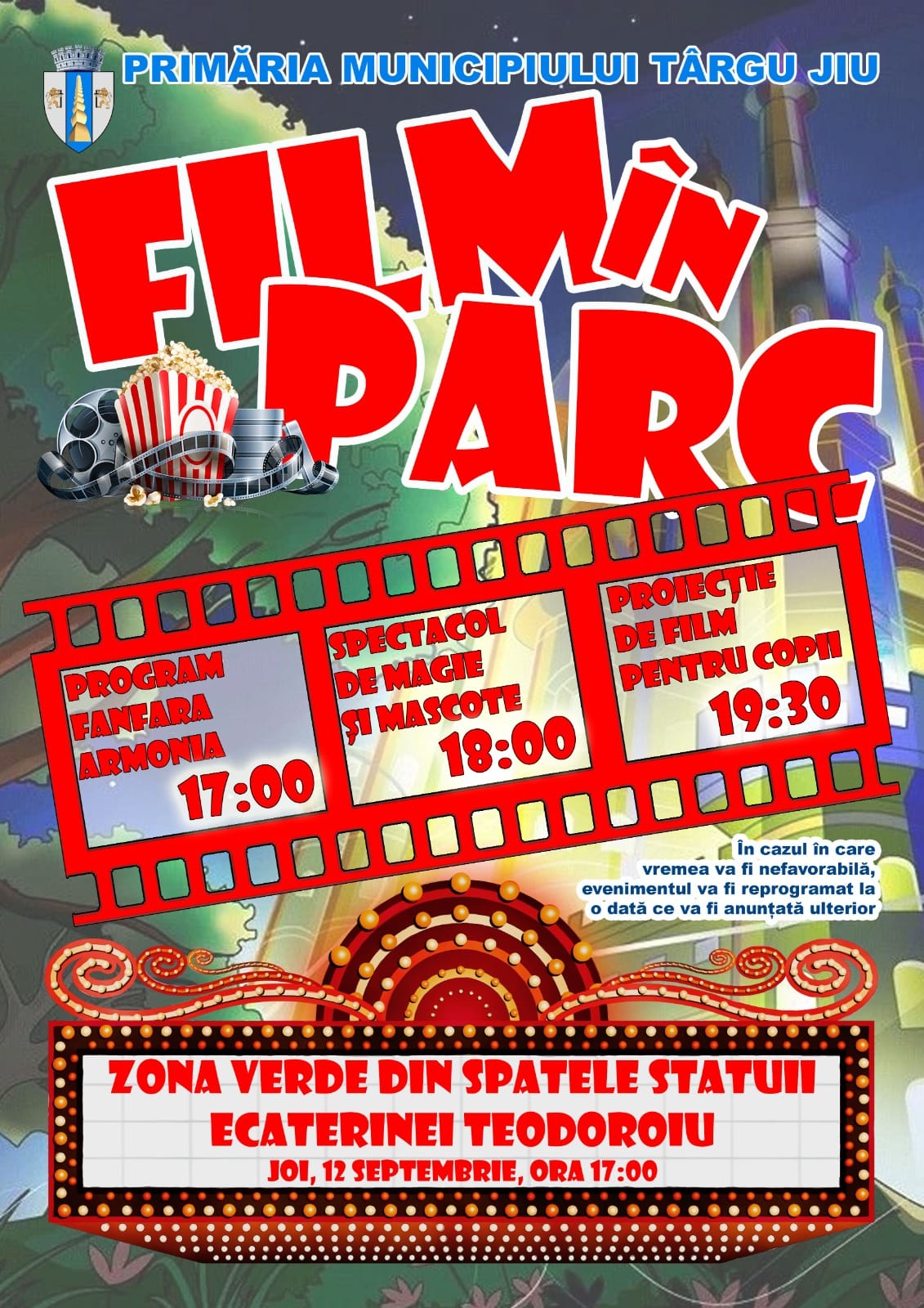 Autoritățile locale din Târgu Jiu vă invită la FILM ÎN PARC!