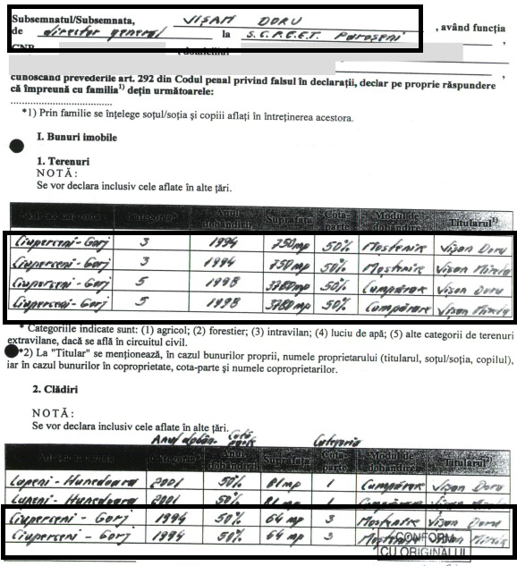Din declarațiile de avere ale celor doi, reiese, în mod evident faptul că Iacob și Vișan dețin proprietăți la Ciuperceni, iar surse apropiate acestora confirmă vechea lor prietenie.