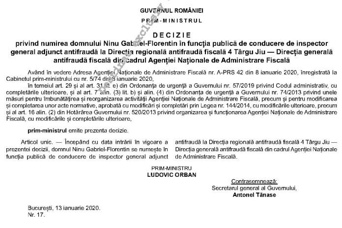 Direcția Regională Antifraudă Târgu-Jiu are de luni, 13 ianuarie, un nou șef. Este vorba de Gabriel Florentin Ninu, cel care a condus, în urmă cu un deceniu, Garda Financiară Gorj, fiind promovat de PDL.