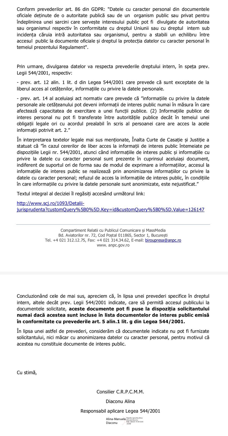 -Circulara sau anexele prin care a fost numit secretarul general al ANPC în poziția de coordonator al acestui Comandament (în format electronic)