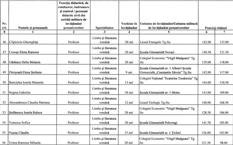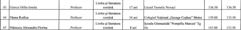 Doresc să știu cum să îmi păstrez motivația de investi permanent în elevii mei din mediul rural dacă nu primesc nici măcar această gradație, cuvenită – și vă asigur că dacă vă alocați timpul necesar pentru a verifica dosarul meu, grăitor în acest sens, vă veți convinge că am dreptate. Îmi pun speranța că totuși se va suplimenta lista cu un loc la limba română. Eu îmi fac datoria de a solicita și în scris acest fapt. Am înțeles că nu ar fi posibil, dar pentru a ști că am făcut tot ce ține de mine în acest sens. De asemenea, dacă totuși nu voi fi inclusă în categoria celor care primesc gradație, voi face o solicitare și la Minister pentru a-mi evalua dosarul, fiindcă subliniez cât de dezamăgită sunt de punctajul primit: una este să lucrez cu elevi de la țară, unde posibilitățile sunt limitate, iar susținerea părinților este una precară, și altceva să am privilegiul de a lucra cu elevi din mediul urban. Am observat că la chimie sunt două locuri și doar un candidat. Doar la limba română e cea mai mica diferență, de 1 punct, la 118 puncte s-a tras linie, iar eu am 117. Aștept răspunsul dumneavoastră, după ce discutați în ședință cu ceilalți domni inspectori.